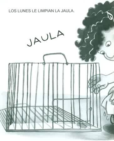 El conejo Dentón vive en la clase de Quico. Todos los días le ponen agua. Pienso y lechuga para comer.
