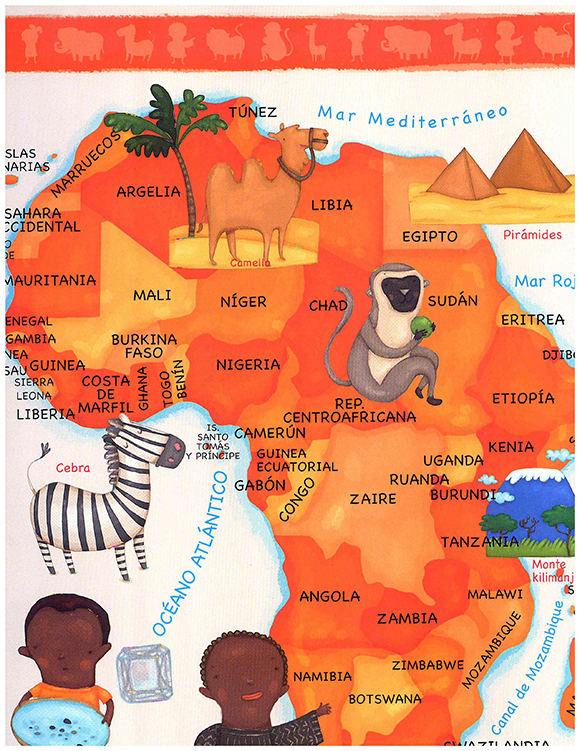 Los atlas convencionales suelen ser lejanos y ajenos a los intereses de un niño pequeño. La enorme cantidad de datos, referencias y coordenadas, a primera vista, no es sino un muro que debe atravesarse para llegar al centro de interés del texto. Mi primer atlas, por fortuna, tiene la intención de ahorrarle al pequeño lector ese difícil encuentro. En él, conocimiento y deslumbramiento son una y la misma cosa, y por tanto la propuesta asume la forma de un maravilloso recorrido pedagógico. ¿Cómo viven los niños en Australia, en Estados Unidos, en África? ¿Cuáles son sus costumbres, sus animales, sus edificios? Todas estas preguntas, abordadas desde una gráfica sumamente amable, quedan respondidas en este extraordinario texto.