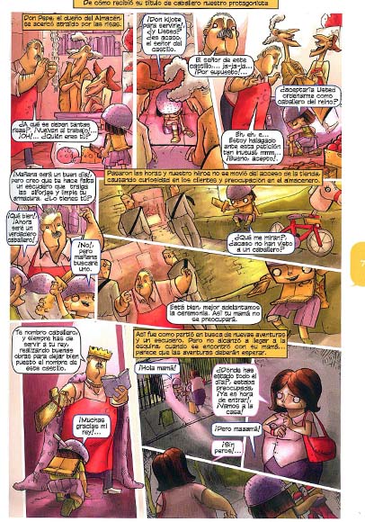 Entretenido cómic que duplica la estructura básica del Quijote de Cervantes (Alonso Quijano como lector del Amadís de Gaula y la novela de caballería en general) a través de la figura de un niño de ocho, nueve o diez años que tras leer el Quijote decide emular sus aventuras. Seguramente, el lector se entusiasmará con este atractivo cómic, que además de actualizar la inmortal obra de Cervantes consigue integrar una serie de referencias culturas propias del Chile del presente (marchas por la diversidad, celebraciones de Cuasimodo, etc.) que lo vuelven mucho más cercano.