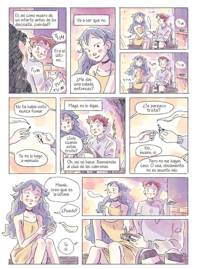 Evocando la inolvidable canción de Elvis, Heartbreak hotel es un varadero imaginario de amores mancillados, un punto de encuentro y redención en el que distintos jóvenes buscan sanar sus maltrechas relaciones pasadas y afrontar con dignidad el dolor, al mismo tiempo que aprenden, (o tratan de hacerlo); a pedir perdón y perdonar. Elementos, todos, fundamentales para una correcta reconstrucción, y para estar a gusto con ellos y con los demás. Cuatro personajes confluyen en este particular espacio, mostrando sin tapujos la fragilidad humana en un camino de autoconocimiento, una fase inherente a la adolescencia, público al que va dirigida la novela gráfica; sondeando conceptos como la aceptación o la búsqueda de identidad sexual, los signos que advierten de la cruel ansiedad, el temor a ser excluido del grupo... Las experiencias que han conducido a esas habitaciones a los protagonistas demuestran que toda interacción social afectiva transforma, sea en una dirección o en otra, por lo que es importante ser conscientes de nuestra vulnerabilidad y de que todo, al fin y al cabo, pertenece a un eterno engranaje que conduce, a partes iguales, por días alegres y tristes, jornadas de sol y de tormenta. Un elegante testimonio de esos procesos dolorosos (poca autoestima, relación fallida con alguien a quien quisimos o perdida de fe en un valor o ideal); trenzado con enorme sensibilidad en diseños elegantes y conmovedores con delicadas tonalidades. La edición, igualmente destacable, convierte este fumetto de tono cozy en una excelente crónica del desamor y la tristeza, pero con brotes de esperanza.
