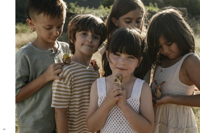 Los niños juegan y disfrutan de la naturaleza a la vez que ejercen de narradores, casi titiriteros, a partir de una serie de objetos artesanos que cobran vida entre las páginas al ritmo de las fotografías, instantes mágicos y poéticos de infancia que hilan las aventuras de Perro, Chanchita y Conejo. Las creaciones, esculturas de corcho, interactúan con los pequeños y con las flores -eterno lugar de encuentro-; al mismo tiempo que descubrimos los "tesoros" que, (¿quién no portó... Seguir leyendo
