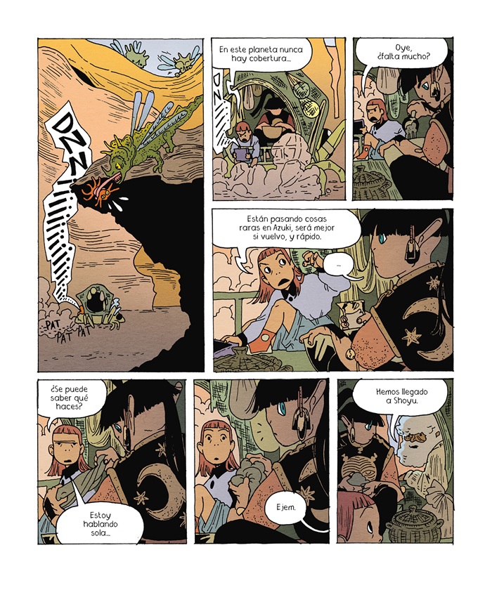 Último episodio de la original trilogía creada por los autores belgas Mathilde Van Gheluwe y Nicolas Wouters, que se han dado a conocer a nivel internacional con esta obra, nominada en el prestigioso festival de cómic de Angoulême (Francia) y seleccionada por la revista electrónica francesa Bodoï, especializada en BD, como uno de los cinco mejores tebeos para el público infantil de 2024. Como intuían los seguidores de la serie, es la hora de la gran final del torneo gourmet intergaláctico. Desafortunadamente, Magda fue eliminada en las semifinales. Así que es Kourou, la misteriosa hija de la Luna, quien debe enfrentarse a la arrogante competidora en la que estás pensando (Golden Gourmet)... Sin embargo, la candidata revela a la protagonista un inquietante secreto, mucho más importante que la propia competición, "la verdad detrás de la inquietante leyenda sobre el planeta Tamaris", en cuyo centro neurálgico se lleva a cabo la fase final: tiempo atrás, la explotación sin control de su flora y fauna (¿A qué nos suena?); generó una catástrofe ecológica que hizo huir a sus habitantes, y es posible que la historia vuelva a repetirse si no toman partido y tratan de devolver el poder robado a la Madre Naturaleza. Magda debe elegir entre afrontar el destino con valentía, si quiere cambiar la sociedad, siguiendo un plan en equipo; o permanecer impasible mientras todo se desmorona. ¡Esto es mucho más que un concurso culinario! ¡El futuro está en juego! La obra, diseñada con el luminoso planteamiento gráfico de las entregas anteriores -con cierto "horror vacui"-; culmina con un bonito epílogo que sirve como homenaje a los verdaderos artífices del éxito de la saga: sus lectores. Tres niños aportan recetas caseras para componer un pequeño catálogo de sugerencias que acercan a chicos y chicas de toda edad a la cocina con fórmulas originales y apetitosas, sencillas de llevar a la práctica. Con esta mise en place es difícil fallar en "la elaboración", su aroma de gran cómic garantiza un nuevo éxito entre el público infantil y juvenil, al que va dirigida la propuesta.
