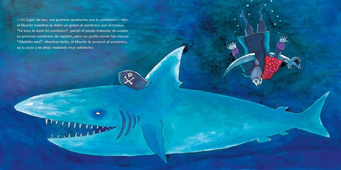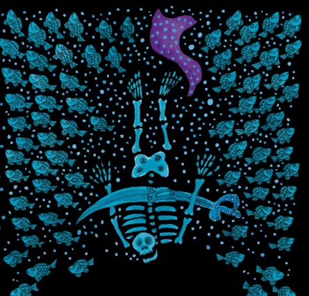 El artista japonés Masakatsu Shimoda aborda, mediante una narración metafórica estructurada en escenas descendentes (comienza sobre la cubierta de un barco y termina en el fondo del mar); los últimos minutos de vida de un peligroso pirata que, derrotado en un combate cuerpo a cuerpo, va desintegrándose metro a metro en su contacto con los animales humanizados que pueblan el océano (tanto la anatomía como los objetos de valor que portaba). Con cada elemento, el personaje parece liberarse de las cosas superfluas, incentivando al lector a pensar en las cosas que, realmente, merecen la pena o tienen importancia para cada uno. Hasta en las sombras de los más aguerridos corsarios hay un hálito de fragilidad, que el ilustrador captura muy bien en un doble plano. Las imágenes, dispuestas a sangre, impactan por el tratamiento de color (una paleta de tonalidades que ambientan a la perfección ese descenso a la zona abisal). Original y provocador, el álbum obtuvo una mención especial en la edición 2024 de los prestigiosos BolognaRagazzi Awards.