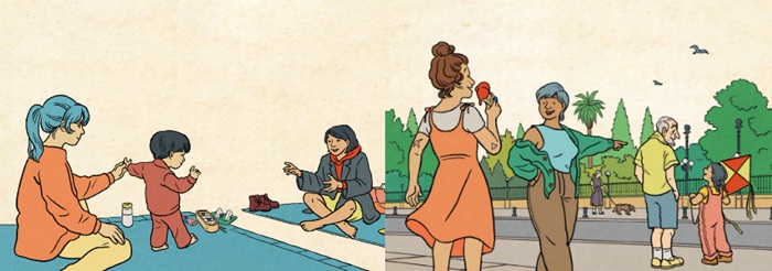 Los parques urbanos parecen que han existido siempre como contrapunto natural a la grisura y contaminación asociadas a las grandes urbes, sin embargo, la mayor parte de los existentes fueron creados no hace tanto, en el siglo XIX, al hilo de la Revolución Industrial que sacudió a muchos países. Hoy sabemos, con certeza, que son imprescindibles pues reducen la temperatura y el ruido del entorno, purifican el aire (son los "pulmones" de las poblaciones); y, por supuesto, aumentan la biodiversidad del lugar (en esta obra divulgativa puedes descubrir una larga lista de animales que viven entre los árboles de estos espacios naturales); e influyen incluso en el ánimo de los habitantes (¿quién no se alegra al escuchar el canto de un mirlo o al respirar el aroma de una higuera?) Las autoras se centran en catorce de los más emblemáticos, un listado muy reducido teniendo en cuenta la cantidad de florestas imprescindibles que, solo en España, podemos disfrutar (el bello Parque Genovés, a orillas del Atlántico, en Cádiz; el literario Campo Grande en Valladolid, fuente de inspiración permanente para escritores como Miguel Delibes; el Campo de San Francisco en Oviedo, con 90.000 metros cuadrados y con orígenes en el siglo XIII, por poner algunos pequeños ejemplos). Los mapas muestran las curiosidades de cada lugar (hay representación de todos los continentes); e invitan al juego con una propuesta lúdica que pone a prueba la pericia visual de los lectores. Además, cada representación incluye grandes "tomas" cenitales para representar los principales monumentos, plantas y animales que viven en ellos; un gran número de curiosidades, y la reivindicación de todas aquellas personas y asociaciones que garantizan la salud de esos sanadores territorios medioambientales, garantes de la salud y la "luz" en nuestras ciudades. Las ilustraciones, pobladas de detalles, están firmadas por la artista barcelonesa Helena Bonastre, que define sus diseños con técnicas digitales a la hora de reafirmar los trazos y aportar color.