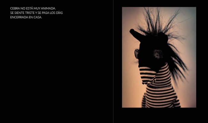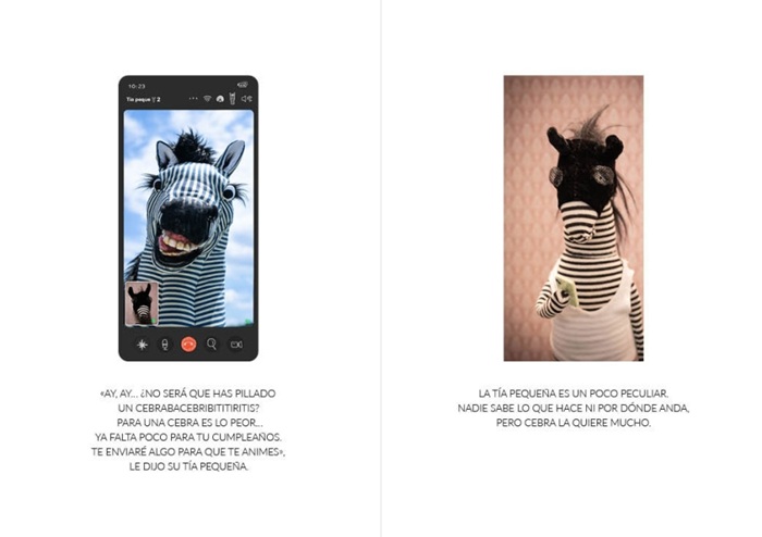 Los dioramas fotográficos a los que nos tiene acostumbrados la artista coreana Heena Baek combinan técnicas propias del cine de animación, estructuras teatrales y aspectos más ligados a la ilustración y a la pintura. Siempre cristalizan en una sorprendente puesta en escena que fusiona el mundo real con un universo fantástico muy personal y seductor. Siguiendo esa premisa, la ganadora del Premio Astrid Lindgren nos acerca, en esta ocasión, a las inquietudes de Cebra. La protagonista no pasa por un buen momento vital, se siente sola, triste y apenas sale de casa. Tía Pequeña, a través de una videollamada, es consciente de la situación y tramita un envío muy especial desde su "Isla aislada, sobre el lago nublado, en la cima de la montaña Animalaya". El paquete contiene un enorme armario de características sorprendentes. "No es perfecto", pero ofrece ropa diversa cada día que ayudará a la protagonista a ver la vida de otro color, hasta el punto de convertir la fecha de su cumpleaños en "el mejor momento de su vida". Al mismo tiempo, ofrece las claves para comprender que todo tiene fecha de caducidad y, por tanto, es necesario aprovechar al máximo cada día para experimentar más allá de nuestra zona de seguridad. El personaje principal es carismático y elegante, tal y como demuestra en su deambular por las excelentes composiciones fotográficas, en 3D, para las que ha empleado materiales tan variados como plásticos y maderas procedentes de procesos de reciclaje, telas, cartón, papel maché, arcilla o elementos autóctonos como el hanji, un tipo de pergamino elaborado a partir de fibras del árbol de Mulberry. Baek no deja de sorprendernos y de conquistar a lectores de todas las edades.