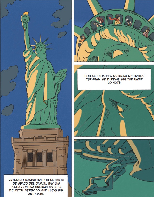 Nueva York, Monumentos, Estados Unidos, Cómic, Adaptaciones, Abuelas, Metáforas, Barrios, Libertad, Fábulas, Vida cotidiana, Convivencia, Personajes literarios, Personajes imaginarios, Relación niño-adulto, Aventuras |
