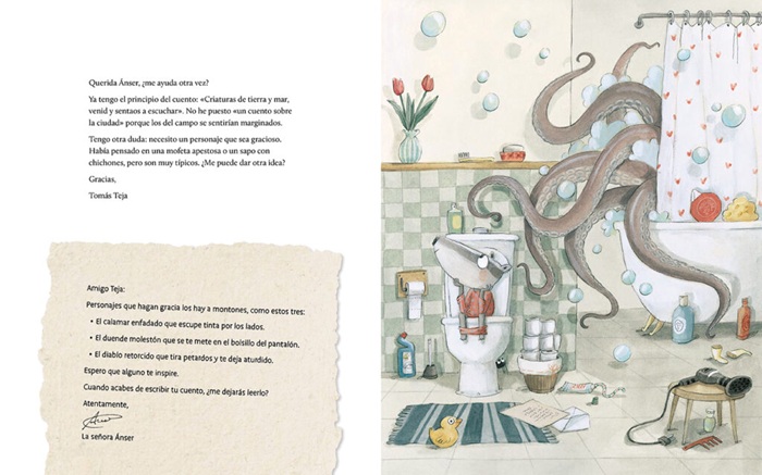 Célebres revistas satíricas del siglo XX como La Codorniz, inolvidables semanarios en formato cómic (DDT, Pulgarcito, Mortadelo...); incluso el icónico personaje ficticio, la "Señora Francis", protagonista de un popular gabinete radiofónico español entre los años 1947 y 1984, explotaron con éxito la metodología del "consultorio" para establecer comunicación directa con los lectores y oyentes y solventar, en la medida de lo posible, las dudas o, simplemente, escuchar sus inquietudes y reflexiones. Como una loa al correo postal, en este tiempo en el que los buzones han quedado relegados a almacenar facturas y publicidad de pizzerías, Meritxell Martí abre una encantadora oficina de atención al ciudadano, con sede física y real en Barcelona (en la página de créditos se indica la dirección exacta por si te quieres animar a participar). La semilla del proyecto nace de este simpático relato, ilustrado con dulzura por Rocío Bonilla, y protagonizado por animales humanizados. La señora Ánser tiene siempre el consejo perfecto (o casi siempre), cualquier habitante de la aldea puede exponer sus dudas y recibe una respuesta cordial y reconfortante. Pero, ¿quién se esconde tras el personaje? ¿Cómo es posible tener un conocimiento tan amplio y variado de los "problemas" de la comunidad? El cartero aporta algunas pistas que conducirá a la pandilla a intuir la verdad...