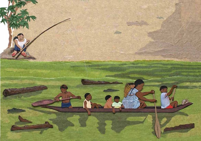 Naná vio por primera vez a Kayabu mientras pescaba en la orilla del río que baña su aldea. Manejaba con destreza una barca, sorteando troncos a la vez que cargaba con muchas personas y algunos animales. Cuando, tiempo después, coinciden en la escuela, surge una amistad inolvidable que aporta profundas enseñanzas a la joven. Kayabu es el ejemplo perfecto de esos niños y adultos que en pleno XXI siguen creciendo en simbiosis perfecta con el medio natural, a pesar del continuo destrozo del hábitat en el que se desenvuelven, casi siempre por mala praxis de los humanos. El relato, cargado de simbolismo y emociones, refleja el valor, el amor por la fauna y flora; y los extensos conocimientos de esos pueblos amazónicos cuya cultura y tradiciones están en peligro, en buena medida por la incomprensión de sus semejantes. Comunidades hospitalarias y sabias que sufren penurias y cambios constantes de residencia obligados por múltiples circunstancias. Este libro ilustrado, editado en formato horizontal, contiene una propuesta gráfica compuesta de escenas dispuestas a sangre, en las páginas pares, y detalles junto al texto, que generan sensación de profundidad, con montajes tridimensionales que nos transportan a los márgenes del río Urubu. Nace de las experiencias vividas en primera persona por la escritora y artista brasileña Eymard Toledo, que atesora una corta pero muy reconocida trayectoria en la literatura infantil y juvenil y es especialmente conocida en Alemania, país en el que tiene fijada su residencia. La autora aporta aclaraciones a pie de página sobre todos los términos y nomenclaturas que pueden resultar desconocidas para el lector occidental, además de incluir un mapa que sitúa la acción en las guardas y un epílogo mediante el que explica el proceso de creación del álbum.