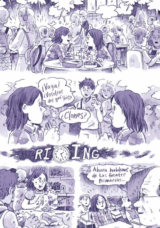 Tegan y Sara son dos hermanas gemelas que, en la vida real, componen un exitoso dúo musical de indie pop con doce álbumes publicados a sus espaldas. Las canadienses, que han sido teloneras de importantes intérpretes (Neil Young, Rufus Wainwright, The Pretenders, The Killers, Ryan Adams, Weezer, Taylor Swift o Katy Perry...); han tenido siempre otras inquietudes artísticas más allá de sus conciertos y grabaciones, por lo que decidieron dar el paso de contar parte de su aún corta biografía para ayudar a visibilizar emociones y sentimientos que, aunque ellas creían que eran patrimonio exclusivo de su experiencia, forman parte del proceso de todos aquellos que se encuentran inmersos en ese cruce de la frontera entre la niñez y la adolescencia al llegar al instituto. Las vivencias, que reflejan los momentos de zozobra de una familia con padres divorciados, mudanzas, dificultad de abrirse paso y conformar un grupo de amigos en un entorno desconocido, o el descubrimiento que, paulatinamente, hacen de la identidad sexual o de la composición e interpretación musical; se canaliza a través personajes que sirven como alter ego y que no se diferencian mucho de los reales, (incluso se han introducido algunas fotografías de aquellos años en la parte final que así lo atestiguan). Pero el verdadero valor de este cómic reside en la interpretación que la reconocida autora Tillie Walden proporciona sobre la historia. Aunque fiel a sus procedimientos creativos y propuestas gráficas, introduce pequeñas experimentaciones en la secuenciación y transmite el universo de incertidumbre que viven las protagonistas con brillantez, a través de una paleta monocromática, alternancia de textos manuscritos con elementos clásicos del lenguaje del noveno arte, y viñetas sin enmarcar que se expanden por toda la página, dispuestas a sangre, para construir un diario de sentimientos adolescentes muy original. Las autoras son, además, referente del colectivo LGTBQ+, con acciones que encauzan a través de su propia fundación.