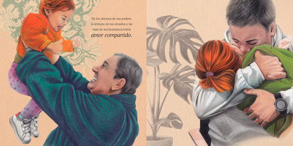 En los abrazos de sus padres,