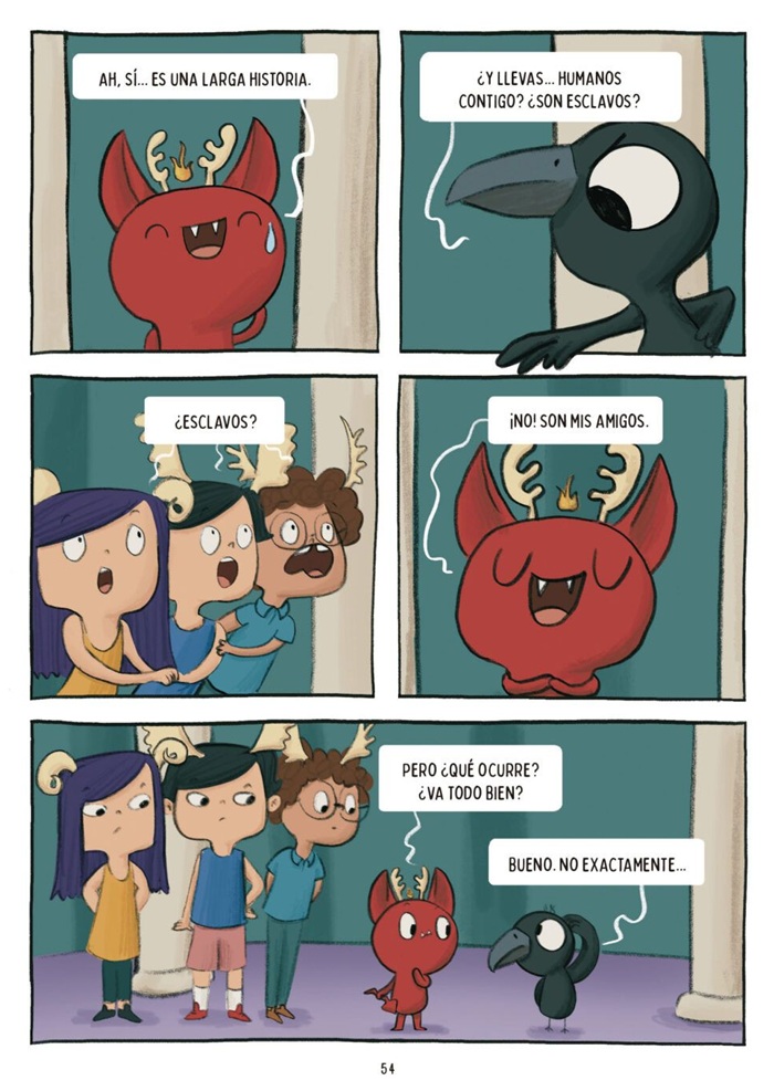 ¡Hola, cachorro de humano! ¡Nos volvemos a encontrar! Sí, sigo aquí, en tu mundo... Aún no me han crecido los cuernos, aunque en esta nueva aventura estoy decidido a que eso cambie. Lo noto en el aire, que está cargado de azufre. ¡Ah! Eso me recuerda que esta mañana me he inventado una adivinanza. ¿Te la digo? Es nivel demonio principiante:
