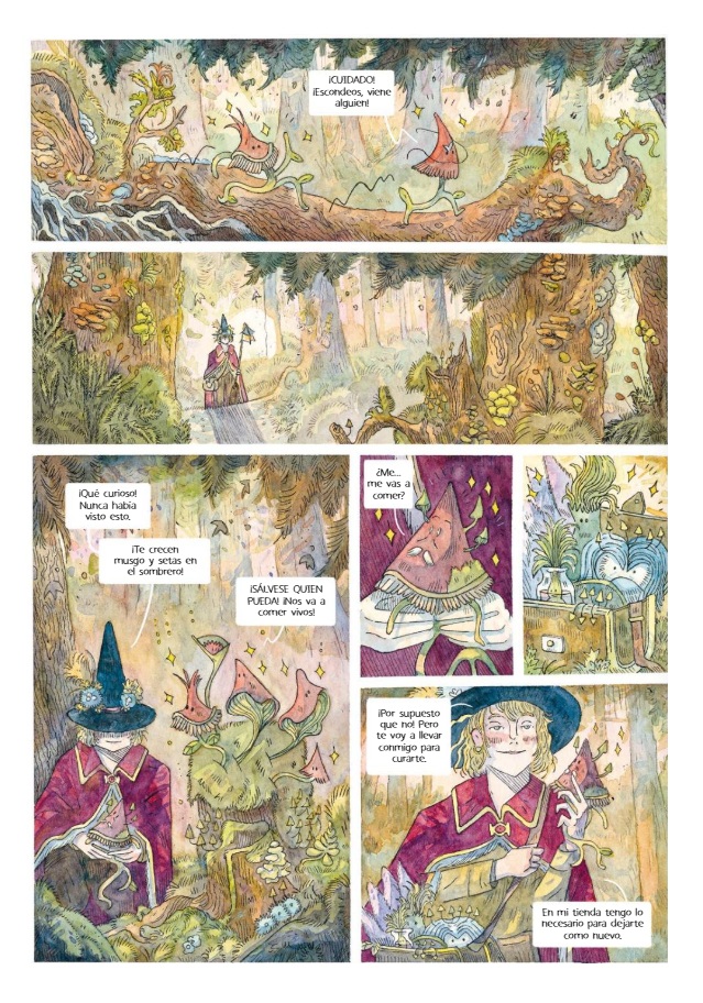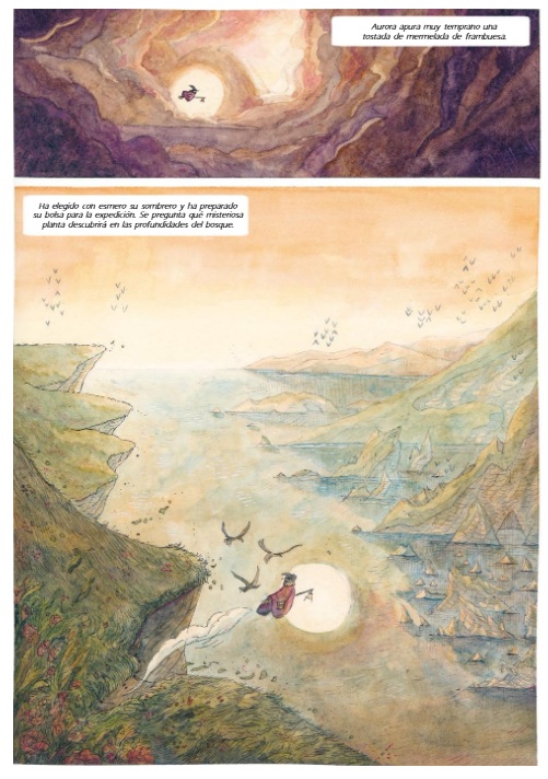 Desde las guardas, el artista francés Vincent Dock nos invita a adentrarnos en el sugerente mundo floral en el que transcurre la acción, con personajes y escenarios trazados a plumilla y colores al agua que confieren a cada página gran elegancia; y ecos, en algunos aspectos, de concepciones gráficas propias de Studio Ghibli y parentescos con la estética presente en las propuestas de otras autoras contemporáneas, como Seguir leyendo