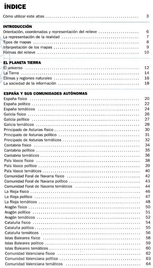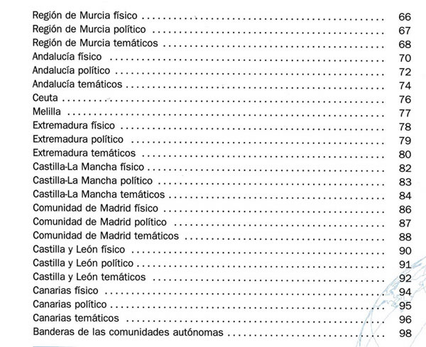 Herramienta para conocer nuestro país, Europa y el resto del mundo. Familiariza al escolar con la lectura de planos y mapas y ayuda a conocer mejor nuestro planeta. Incluye fotografías a todo color y numerosos gráficos que informan visualmente de la fisonomía de pueblos y ciudades. Más de 80 mapas temáticos completan la cartografía física y política de cada comunidad autónoma. Ofrece un apartado especial sobre la Unión Europea, dos planisferios y un tratamiento cartográfico separado de cada continente. Por último, incluye un completo índice de los topónimos.Herramienta para conocer nuestro país, Europa y el resto del mundo. Familiariza al escolar con la lectura de planos y mapas y ayuda a conocer mejor nuestro planeta. Incluye fotografías a todo color y numerosos gráficos que informan visualmente de la fisonomía de pueblos y ciudades. Más de 80 mapas temáticos completan la cartografía física y política de cada comunidad autónoma. Ofrece un apartado especial sobre la Unión Europea, dos planisferios y un tratamiento cartográfico separado de cada continente. Por último, incluye un completo índice de los topónimos.