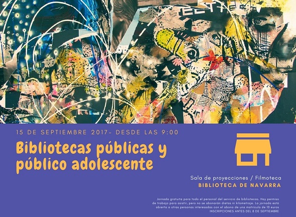 La Biblioteca de Navarra organiza, el próximo 15 de septiembre, la jornada Bibliotecas públicas y público adolescente, en la Sala de Proyecciones / Filmoteca de Pamplona. Se trata de una cita en la que participan diversos profesionales procedentes de distintas entidades que desarrollan una programación estable con jóvenes lectores o que analizan sus comportamientos en relación a la lectura. Entre ellos se encuentran representantes del Proyecto Mandarache y la Fundación Germán Sánchez Ruipérez. Además se expondrán numerosas experiencias llevadas a cabo en distintas bibliotecas de la comunidad foral con este sector de edad.