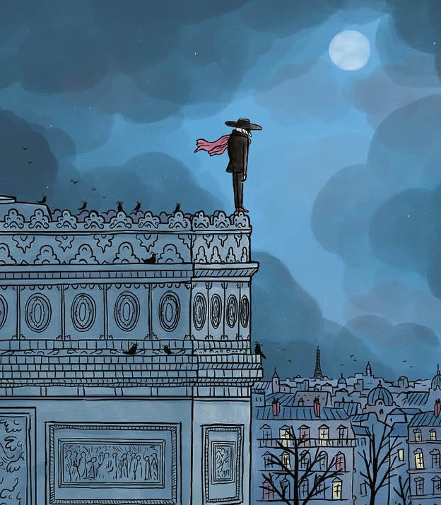 La vida del señor Petroulakis, uno de los últimos vampiros de una antigua genealogía, transcurre plácida y algo anodina en su oscuro piso. Pasa largas horas en compañía de sus mascotas, rodeado de recuerdos y solo de vez en cuando echa de menos la realidad exterior, momentos en los que surca los cielos parisinos montado en el aviodáctilo fabricado con sus propias manos. Nuestro protagonista posee unas características especiales (a diferencia de los de su especie, es diurno); que le permiten aventurarse a pisar la calle en momentos en los que no es frecuente encontrarse con un espectro. La necesidad de alimentar al gato cuando falla el servicio a domicilio, le lleva a visitar el supermercado y salir de su zona de confort. Perdido en las calles acepta la ayuda de una joven que, dispuesta a acompañar al señor hasta su morada, accede a la vivienda y a, tras el susto inicial, conversar con él. Será el punto de inicio para fraguar una relación de afecto y complicidad, que lleva al lúgubre personaje a confesar los hitos de su larga y reputada trayectoria como condecorado piloto de la I Guerra Mundial, ingeniero o inventor; e incluso a que el pájaro Dimitri recupere su trino. La memoria y la ilusión del señor, incentivadas por Zoe, conducen al lector a una revelación inesperada durante una visita al museo de aviación... ¿Y si esta "criatura" no correspondiese exactamente a la idea que se tiene de ellos en el folclore popular? El embrujo de la capital francesa, cuya belleza nocturna es capturada en diversas escenas, ofrece un clima especial para desarrollar la romántica y tierna historia de un ser perdido en el tiempo actual, que solo es capaz de activar su memoria gracias a la escucha y a la comprensión de esta nueva y pequeña amiga. Fantástica colaboración de Davide Cali, un autor siempre sugerente, y el artista francés Sébastien Mourrain, poseedor de un estilo único, muy atractivo, en el panorama de la ilustración actual.