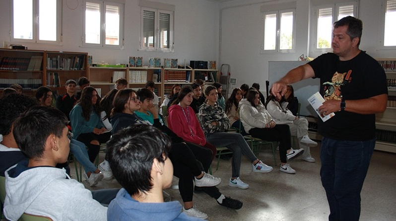 Encuentro literario del autor Nando López en el IES Rafal (Foto realizada por miembros del equipo educativo de este centro escolar)