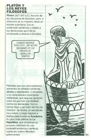 Concentrado en los momentos y las figuras cruciales de la evolución del pensamiento filosófico en Occidente, este libro resulta un resumen útil y esclarecedor, tanto para servirse de él en las aulas como para explorar por libre la evolución de las ideas. Las imágenes que lo ilustran, según los procedimientos de los cómics, optan por la cercanía y la frescura, y ponen de manifiesto un saludable sentido del humor. La historia, la literatura, la ciencia, el estudio del lenguaje..., todas las disciplinas adquieren un sentido más completo relacionadas en esta condensada historia de las ideas.