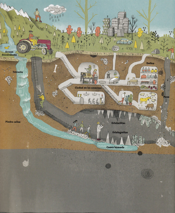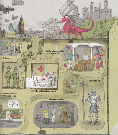Obra informativa que da conocer el mundo que se encuentra bajo nuestros pies mediante un recorrido por la historia, la industria y la tecnología. A través de nueve capítulos, plagados de ilustraciones llenas de detalles, muestra el mundo que hay bajo tierra. Ciudades subterráneas, cuevas, tumbas históricas, calabozos, minas, pasajes subterráneos de ciudades como París o Tokio, o tecnotúneles, son algunos de los lugares descritos. Está escrito con un estilo desenfadado, combinando el humor y el rigor científico.