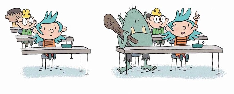 Desde los tiempos de la serie La mazmorra (tal vez no valorada lo suficiente en su momento, pero un auténtico vivero de autores que luego han marcado el devenir del noveno arte en el XXI), Lewis Trondheim ha destacado como uno de los guionistas y dibujantes más talentosos de lo que se vino a llamar nouvelle bande dessinné. En su carrera, reconocida con el Grand Prix de la Ville d'Angoulême, ha alternado la publicación de grandes obras para pequeños y grandes lectores. Con la serie "Aurora y el Orco" regresa al territorio infantil para plantear la casual y absurda amistad que se forja entre una niña y un orco, monstruo de la mitología celta popularizado por las obras de J. R. R. Tolkien. El horrible, a la par que simpático, nuevo compañero, queda varado en la escuela a la que acude la pequeña merced a un hechizo mal ejecutado. Sus escatológicas y violentas formas de relacionarse generan interés y sorpresa entre los compañeros, aunque el equipo docente trata de integrar y adaptar sus costumbres al ecosistema escolar de forma natural. Las descacharrantes intervenciones en clase, las situaciones que se generan en los espacios de convivencia y las estrafalarias convicciones del personaje fantástico convierten el guion en una divertida concatenación de situaciones que dibujarán muchas sonrisas. La secuenciación, en viñetas sin enmarcar, se distribuye en historietas gráficas de corta extensión, pero sin delimitación con títulos o epígrafes, y enmarcando todos los diálogos en distintas partes de unos mismos escenarios. La saga, estructurada con un guion dinámico y ocurrente, incluye otros dos títulos, a la misma altura que esta obertura: "En el mundo de los elfos" y "El terror de los orcos", en el que ambos personajes viajan en el tiempo, como consecuencia de una trampa, al mundo del que proviene la criatura.