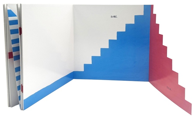 A lo largo de su amplia carrera, Hervé Tullet ha sorprendido a los pequeños lectores con todo tipo de recursos en el campo de la ingeniería en papel. Sus propuestas, siempre disruptoras y orientadas a que los niños interactúen con las páginas y creen su propio argumentario artístico, suelen incluir un variado compendio de troqueles, páginas pop-up y solapas móviles, casi siempre con figuras geométricas y acciones ligadas a practicar la motricidad fina como hilo conductor. En esta ocasión el juego, bañado en vivos colores, traza un camino en el que hay que seguir, como en aquel programa de Emilio Aragón de los años ochenta, la línea hasta el final. El sendero varía, pero nos invitan a mantenernos firmes independientemente de donde nos lleve. Sube, baja, se introduce por vericuetos inesperados y, de paso, muestra figuras de todo tipo y condición, creaciones artísticas que inspiran a los más pequeños y les invita a buscar su propia paleta de tonalidades a la hora de configurar el argumento. Una divertida invitación al juego interactivo, ideal para compartir con un adulto que ayude a manejar el artefacto gráfico (no tiene puntas redondeadas y, debido al grosor, pesa bastante, por lo que hay que extremar la precaución al manejarlo con los más pequeños de la casa)