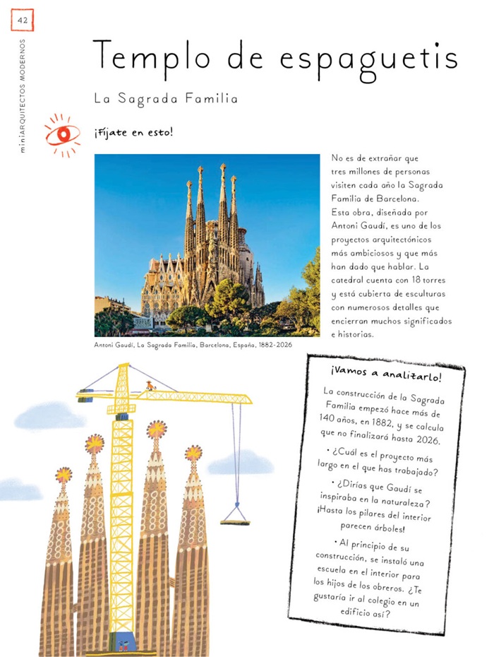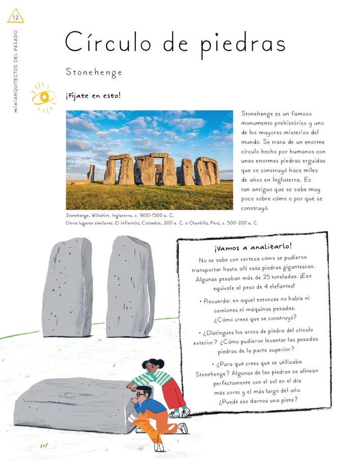 Un proyecto artístico con veinte ideas DIY que invitan a los más lectores infantiles a reproducir diversos monumentos y edificios emblemáticos de todo el mundo a pequeña escala. Cada capítulo incluye cuatro páginas. En la primera se describe el espacio escogido con algunos datos básicos y curiosidades, a continuación, los más curiosos deben imitar cada detalle del mismo a partir de una serie de sugerencias y materiales. Buena parte de esas manualidades tienen como base el reciclaje, con la idea de fomentar esta dinámica en nuestra vida diaria, no solo aplicada al ocio. De esta forma se permite a los chicos y chicas indagar sobre diversos estilos, técnicas, materiales de construcción, algo que, a la edad a la que va dirigida la propuesta (aunque, en realidad, disfrutarán tanto ellos como los mayores que los acompañen en el proceso); es especialmente motivador. Para llegar a buen puerto es necesario primero disponer de una adecuada caja de "herramientas", y no ceñirse a los parámetros que dicta la autora (Joséphine Seblon, que ya publicó junto al mismo ilustrador un libro de corte similar, pero centrado en las obras de otros veinte creadores de otras ramas artísticas); sino dejarse guiar por la imaginación y el instinto propio. Una oportunidad para recrear y descubrir desde los secretos de Stonehenge (monumento prehistórico ubicado en Wiltshire, Inglaterra); las pirámides de Guiza, en Egipto; el laberinto de Teseo (¡con canicas!), un iglú inuit, un tipi de la tribu de los "Pies negros" o una fortaleza medieval... Hasta los modernísimos e inspiradores mercados de Dadaji, en Níger, o el Museo de Arte Contemporáneo Odunpazari en Turquía. Nunca en tan pocas páginas se concentraron tantas valiosas ideas para edificar maquetas divertidas e inspiradoras y pasar una tarde muy divertida.