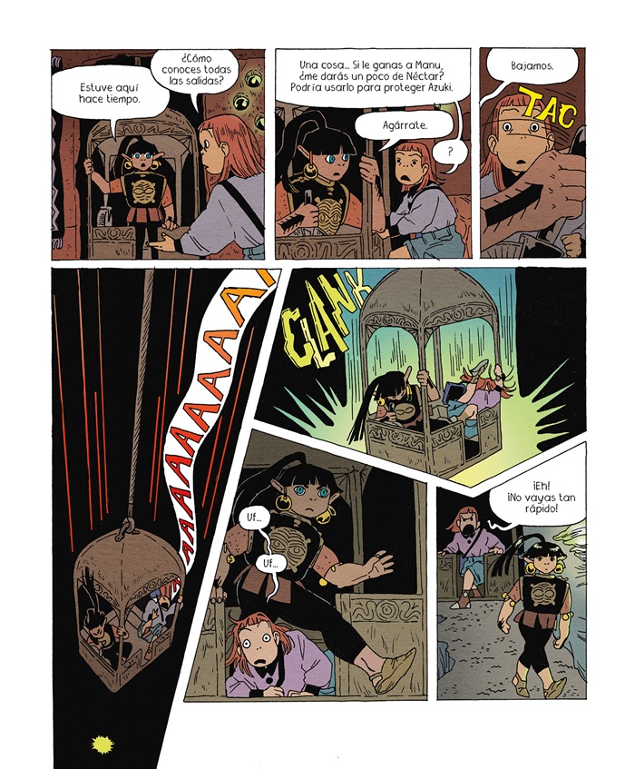 Último episodio de la original trilogía creada por los autores belgas Mathilde Van Gheluwe y Nicolas Wouters, que se han dado a conocer a nivel internacional con esta obra, nominada en el prestigioso festival de cómic de Angoulême (Francia) y seleccionada por la revista electrónica francesa Bodoï, especializada en BD, como uno de los cinco mejores tebeos para el público infantil de 2024. Como intuían los seguidores de la serie, es la hora de la gran final del torneo gourmet intergaláctico. Desafortunadamente, Magda fue eliminada en las semifinales. Así que es Kourou, la misteriosa hija de la Luna, quien debe enfrentarse a la arrogante competidora en la que estás pensando (Golden Gourmet)... Sin embargo, la candidata revela a la protagonista un inquietante secreto, mucho más importante que la propia competición, "la verdad detrás de la inquietante leyenda sobre el planeta Tamaris", en cuyo centro neurálgico se lleva a cabo la fase final: tiempo atrás, la explotación sin control de su flora y fauna (¿A qué nos suena?); generó una catástrofe ecológica que hizo huir a sus habitantes, y es posible que la historia vuelva a repetirse si no toman partido y tratan de devolver el poder robado a la Madre Naturaleza. Magda debe elegir entre afrontar el destino con valentía, si quiere cambiar la sociedad, siguiendo un plan en equipo; o permanecer impasible mientras todo se desmorona. ¡Esto es mucho más que un concurso culinario! ¡El futuro está en juego! La obra, diseñada con el luminoso planteamiento gráfico de las entregas anteriores -con cierto "horror vacui"-; culmina con un bonito epílogo que sirve como homenaje a los verdaderos artífices del éxito de la saga: sus lectores. Tres niños aportan recetas caseras para componer un pequeño catálogo de sugerencias que acercan a chicos y chicas de toda edad a la cocina con fórmulas originales y apetitosas, sencillas de llevar a la práctica. Con esta mise en place es difícil fallar en "la elaboración", su aroma de gran cómic garantiza un nuevo éxito entre el público infantil y juvenil, al que va dirigida la propuesta.