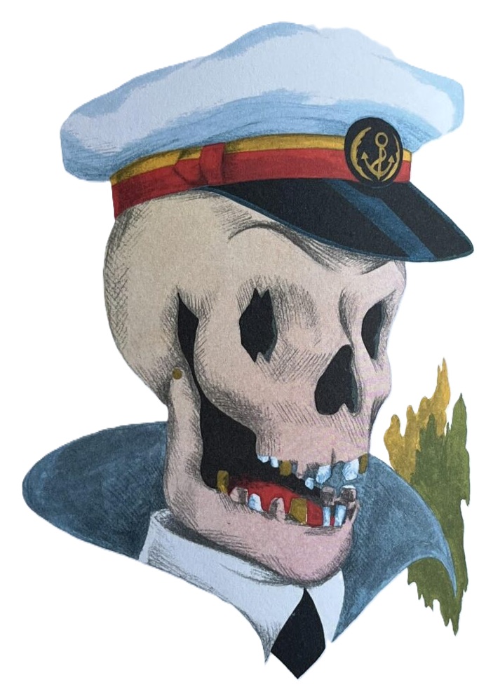 Los proyectos de Blexbolex suponen siempre una agradable sorpresa para los lectores infantiles y juveniles. Pocos autores hay en el panorama actual capaces de crear un ecosistema gráfico tan personal como el que consigue el artista francés. Con talento, fusiona el genoma del cine y del cómic para configurar un relato trenzado con técnicas serigraficas (disciplina en la que es todo un experto); que generan escenas y personajes cercanos a los conceptos de "línea clara" -contornos definidos, colores planos...-; pero con una honda huella de la estética vintage y un claro gusto (que los lectores agradecemos), por la experimentación. A medio camino entre la novela de aventuras y el relato onírico, alterna personajes reales con otros siniestros, pero carismáticos, compañeros -como el propio pirata que da título a la obra- (un esqueleto al que le gusta hacerse respetar a base de terroríficas prácticas); e, incluso, homenajes solapados a clásicos de la literatura (el joven que ejerce de narrador recuerda en cierta medida a El Principito). Hyeronimus, (¿un guiño a El Bosco?); viaja en tren agobiado por una complicada realidad familiar. Pasará unos días del verano junto a su tío en Villa Perthuis. La casa sirve como casilla de salida para una aventura que transita por escenarios urbanos y naturales en donde confluyen canales y callejones. En el agua distingue una embarcación con una misteriosa tripulación: una joven asombrosamente pálida, un marinero felino y, sobre todo, un siniestro marinero, jefe de la banda, que obliga al chico, de forma violenta, a convertirse en grumete. La figura cadavérica del personaje perseguirá siempre al niño, aunque consiga escapar. Aventura, acción y fantasía inquietante, con prosa de gran calidad, para evocar difusos días de infancia. Un relato editado con exquisita elegancia.