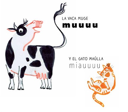 Si la vaca muge y el gato maúlla, ¿qué crees que hará el vagato? Si la oveja bala y el perro ladra, ¿cómo se comunica la perroveja? En un formato adecuado para los prelectores, con páginas de gran gramaje y puntas romas, Ronny Ruiz despliega su creatividad al ritmo de un poema humorístico y juguetón que combina onomatopeyas y especies animales, inventando nuevas razas y sonidos que incentivan la imaginación de los más pequeños de la casa. La artista madrileña María Pascual opta por una estética basada en trazos limpios, desprovista de fondos, paletas de color accesibles y una estructura visual clara que ludifica tipografías y combina tonalidades, con la idea de reforzar el juego léxico.