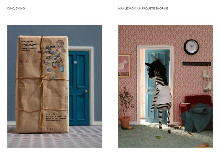 Los dioramas fotográficos a los que nos tiene acostumbrados la artista coreana Heena Baek combinan técnicas propias del cine de animación, estructuras teatrales y aspectos más ligados a la ilustración y a la pintura. Siempre cristalizan en una sorprendente puesta en escena que fusiona el mundo real con un universo fantástico muy personal y seductor. Siguiendo esa premisa, la ganadora del Premio Astrid Lindgren nos acerca, en esta ocasión, a las inquietudes de Cebra. La protagonista no pasa por un buen momento vital, se siente sola, triste y apenas sale de casa. Tía Pequeña, a través de una videollamada, es consciente de la situación y tramita un envío muy especial desde su "Isla aislada, sobre el lago nublado, en la cima de la montaña Animalaya". El paquete contiene un enorme armario de características sorprendentes. "No es perfecto", pero ofrece ropa diversa cada día que ayudará a la protagonista a ver la vida de otro color, hasta el punto de convertir la fecha de su cumpleaños en "el mejor momento de su vida". Al mismo tiempo, ofrece las claves para comprender que todo tiene fecha de caducidad y, por tanto, es necesario aprovechar al máximo cada día para experimentar más allá de nuestra zona de seguridad. El personaje principal es carismático y elegante, tal y como demuestra en su deambular por las excelentes composiciones fotográficas, en 3D, para las que ha empleado materiales tan variados como plásticos y maderas procedentes de procesos de reciclaje, telas, cartón, papel maché, arcilla o elementos autóctonos como el hanji, un tipo de pergamino elaborado a partir de fibras del árbol de Mulberry. Baek no deja de sorprendernos y de conquistar a lectores de todas las edades.