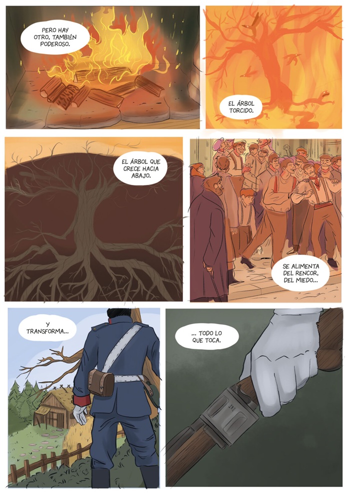 En la misma línea que algunas conocidas propuestas cinematográficas nacionales que han triunfado durante los últimos años, este cómic parte de unos mimbres claramente conectados con las fábulas y leyendas rurales fusionadas con arquetipos propios del género fantástico. Los autores, hermanos con una dilatada trayectoria en varios territorios literarios e hijos de Martin Etxeberria Zuloaga, que en su día también sondeó las costumbres y tradiciones del País Vasco, acercan al lector a un territorio poco transitado en la literatura (en comparación con otros espacios fronterizos); como son las Landas de Gascuña (región histórica y natural en el suroeste de Francia), en un momento de grandes transformaciones. En el tránsito entre el XIX y el XX, el paisaje y la sociedad cambiaron con la introducción de progresos llamados a mejorar la vida de los habitantes de la zona, sin embargo, para Margot -protagonista del cómic-; presente y futuro están teñidos de tristeza y dudas tras haber sufrido la pérdida de su madre. A partir de ese momento traumático, su vida transcurre en la fina línea que separa lo real de lo fantástico. Una vereda poblada de escenarios e hitos sugerentes basados en el folclore local, cimentados con gran imaginación y convertidos en imágenes gracias a la sensibilidad poética de una artista, Arianna Pisani, que ha sido capaz de capturar en viñetas intensas las supersticiones, las leyendas locales, la evolución del entorno (de desierto a pinar, tras la plantación masiva de esta especie). Al mismo tiempo, el ecosistema constituye una elocuente metáfora de ese periodo lleno de dudas y sorpresas por el que pasa el personaje principal y, seguramente, muchos de los lectores que se sumerjan en las páginas, que es el tránsito entre la infancia y la juventud. El cómic retrata a la perfección la historia de un territorio, siempre hospitalario, sobre el que se detallan pinceladas básicas (cronología, creencias, lengua, etc...); en el epílogo.