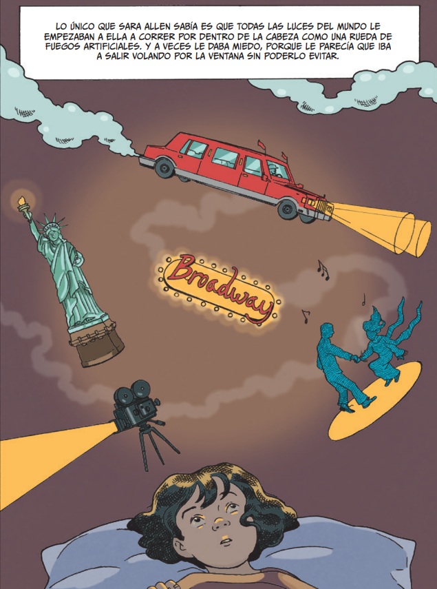 Helena Bonastre y Catalina González aceptaron el mayúsculo reto de convertir en cómic una novela que ha marcado a varias generaciones. Mucho antes de que el concepto de retelling, tan en boca ahora de algunos lectores, existiera, la irrepetible Carmen Martín Gaite imaginaba la aventura de Sara Allen, en lo que ya es pieza angular de la producción literaria para adolescentes (y mayores, porque su capacidad simbólica atrae a todo tipo de público), de finales de los años ochenta. La traslación mantiene el espíritu cercano al "realismo mágico" del original, y potencia las conexiones con el clásico cuento de hadas de transmisión oral, convertido aquí en una travesía iniciática que recorre escenarios tan emblemáticos de la Gran Manzana como Brooklyn o Central Park, siempre con el objetivo de reencontrarse con la abuela, una singular ex cantante de music-hall. La aventura propicia la observación de una nómina de peculiares personajes, como Mr. Woolf, sosías del lobo feroz, aquí un pastelero millonario que vive en un rascacielos con forma de tarta; o Miss Lunatic, una homeless a la que cobija, durante el día, la Estatua de la Libertad y que se transforma en una especie de "ángel de la guarda" al caer el sol. La obra esconde una brillante reflexión sobre la transición entre infancia-adolescencia-adultez, pero también sobre el valor de la libertad, la necesidad de un profundo autoconocimiento o la necesaria voluntad y valentía necesarias para trazar, por nosotros mismos, un camino acorde a aquello en lo que creemos. Como complemento se incluyen las ilustraciones a plumilla que realizó, en su día, la propia autora. Un relato onírico y rebelde lleno de símbolos trascendentales, como tantos otros hermosos sueños y aprendizajes, escrito desde la cercanía con que se viven los propios anhelos.