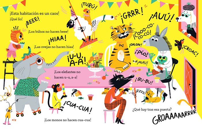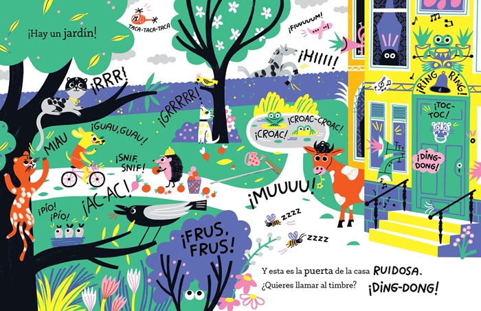 Libro interactivo que propone un juego con el pequeño lector basado en todas las onomatopeyas asociadas a los objetos, acciones y seres residentes en una casa. La expedición al interior del edificio, con apariencia misteriosa, hace parada en las diferentes estancias para dar cuenta de todo lo que allí se puede escuchar. El cuento genera la sonrisa cómplice a medida que nos sumerge en una enorme y colorista maraña de expresiones, representadas con variadas tipografías y dispuestas en escenas, a página completa,... Seguir leyendo