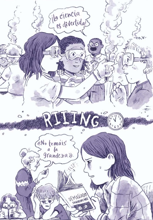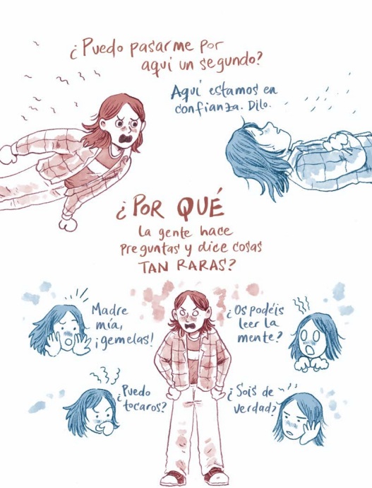Tegan y Sara son dos hermanas gemelas que, en la vida real, componen un exitoso dúo musical de indie pop con doce álbumes publicados a sus espaldas. Las canadienses, que han sido teloneras de importantes intérpretes (Neil Young, Rufus Wainwright, The Pretenders, The Killers, Ryan Adams, Weezer, Taylor Swift o Katy Perry...); han tenido siempre otras inquietudes artísticas más allá de sus conciertos y grabaciones, por lo que decidieron dar el paso de contar parte de su aún corta biografía para ayudar a visibilizar emociones y sentimientos que, aunque ellas creían que eran patrimonio exclusivo de su experiencia, forman parte del proceso de todos aquellos que se encuentran inmersos en ese cruce de la frontera entre la niñez y la adolescencia al llegar al instituto. Las vivencias, que reflejan los momentos de zozobra de una familia con padres divorciados, mudanzas, dificultad de abrirse paso y conformar un grupo de amigos en un entorno desconocido, o el descubrimiento que, paulatinamente, hacen de la identidad sexual o de la composición e interpretación musical; se canaliza a través personajes que sirven como alter ego y que no se diferencian mucho de los reales, (incluso se han introducido algunas fotografías de aquellos años en la parte final que así lo atestiguan). Pero el verdadero valor de este cómic reside en la interpretación que la reconocida autora Tillie Walden proporciona sobre la historia. Aunque fiel a sus procedimientos creativos y propuestas gráficas, introduce pequeñas experimentaciones en la secuenciación y transmite el universo de incertidumbre que viven las protagonistas con brillantez, a través de una paleta monocromática, alternancia de textos manuscritos con elementos clásicos del lenguaje del noveno arte, y viñetas sin enmarcar que se expanden por toda la página, dispuestas a sangre, para construir un diario de sentimientos adolescentes muy original. Las autoras son, además, referente del colectivo LGTBQ+, con acciones que encauzan a través de su propia fundación.