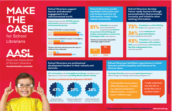 Los bibliotecarios escolares conectan, a través de ellas, con otros agentes y educadores para implementar las tendencias actuales y aprovechar al máximo los recursos disponibles para la enseñanza y el aprendizaje.