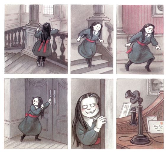 Me encanta el trabajo de Posy Simmonds y descubrí este libro en una exposición sobre ella en la House of Illustration de Londres. Es difícil de conseguir y solamente está publicado en inglés, pero merece mucho la pena: cuenta la historia de Matilda, una niña tan mentirosa que cuando quema su casa en una de sus travesuras, su familia la deja arder con ella. Me encanta esa forma salvaje de contar la historia, sin endulzar. Y las ilustraciones de Simmonds son maravillosas: crea un personaje memorable, una versión irritante de Miércoles Addams.