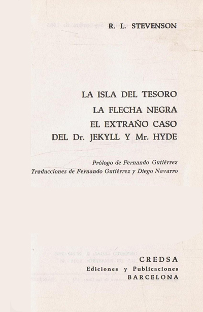 Las narraciones de Stevenson me proporcionaron momentos maravillosos de niña, pero si debo quedarme con un título, elijo sin dudarlo -sería el otro que no podría faltar- La isla del Tesoro, al que he vuelto en numerosas ocasiones, también para leérselo en voz alta a mis hijos. Va en esta selección de cinco títulos como representación de los muchos libros de aventuras que van a quedar fuera (Kipling, Verne, London, Twain, el Lazarillo, Salgari, Melville…), esos libros que proporcionaban el placer increíble del viaje –a otro escenario, a otro tiempo- y el peligro mientras una permanecía confortablemente arrebujada en la seguridad del sillón orejero o en la tibieza de las sábanas. Lo leí tempranamente -también los otros dos títulos- en esta edición del 1965 de Credsa, Bacelona.