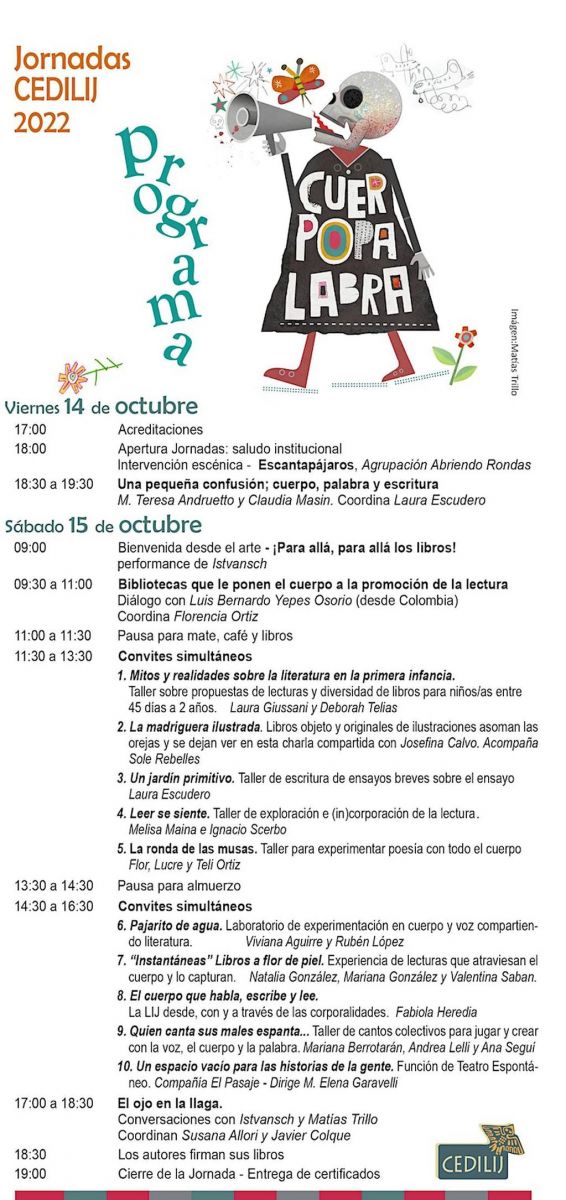 La jornada anual de formación y actualización que organiza el Centro de Difusión e Investigación en Literatura Infantil y Juvenil, CEDILIJ, alcanza su decimotercera edición con una doble sesión especialmente orientada a docentes de todos los niveles y modalidades, trabajadores de bibliotecas, mediadores de lectura, estudiantes y profesionales vinculados a la educación, las artes y las infancias.