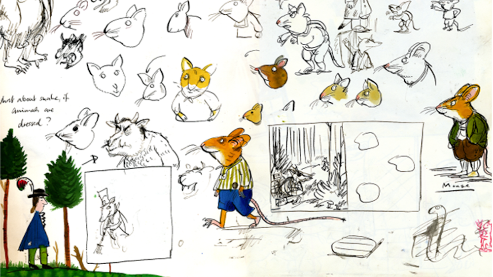Los personajes adquirieron su personalidad definitiva gracias a la imaginación de Axel Scheffler. En sus primeros bocetos, la apariencia del monstruo era más temible de la que finalmente conocimos. También pensó en hacer que los animales usaran ropa, pero al final optó por presentar el elenco tal y como los has visto en los libros.