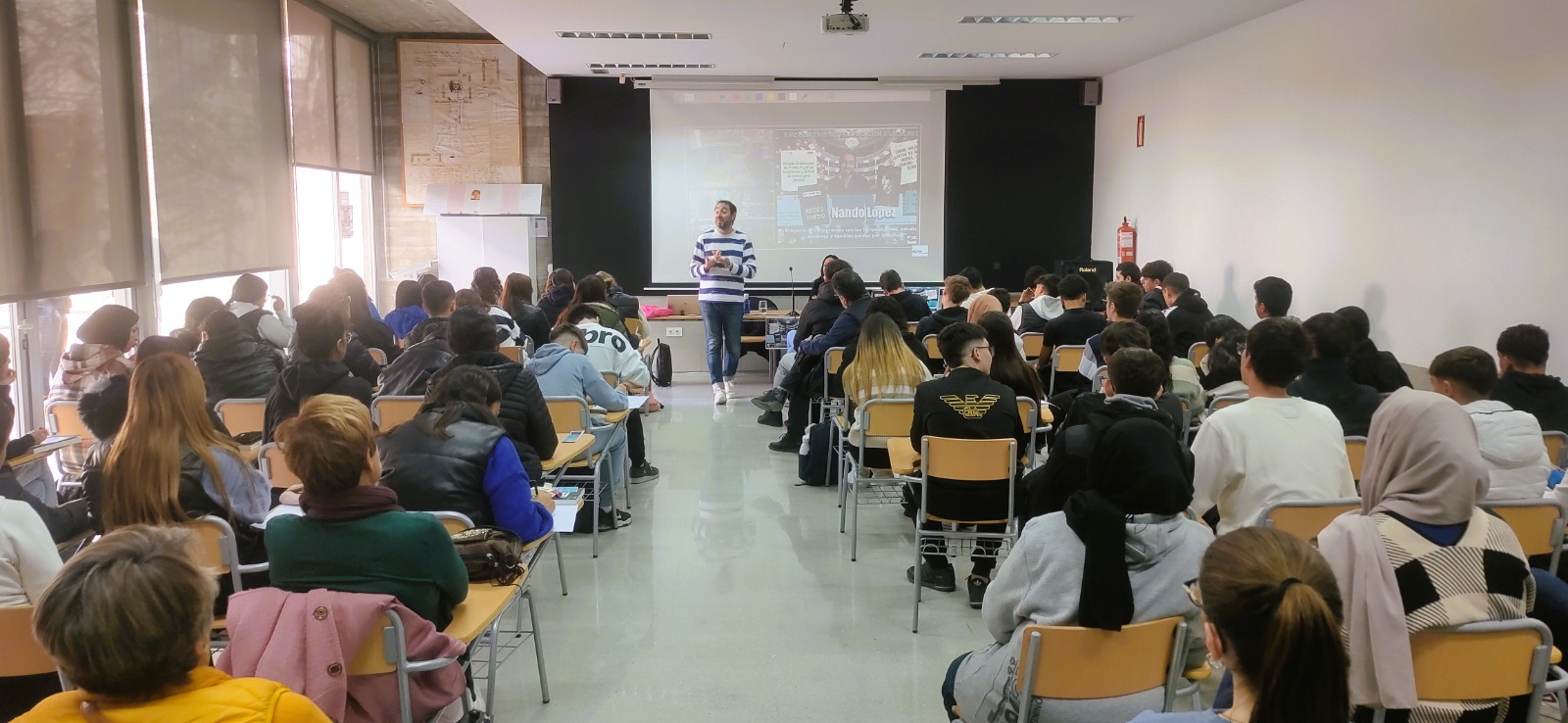 Encuentro literario del autor Nando López en el IES Rafal (Foto realizada por miembros del equipo educativo de este centro escolar)
